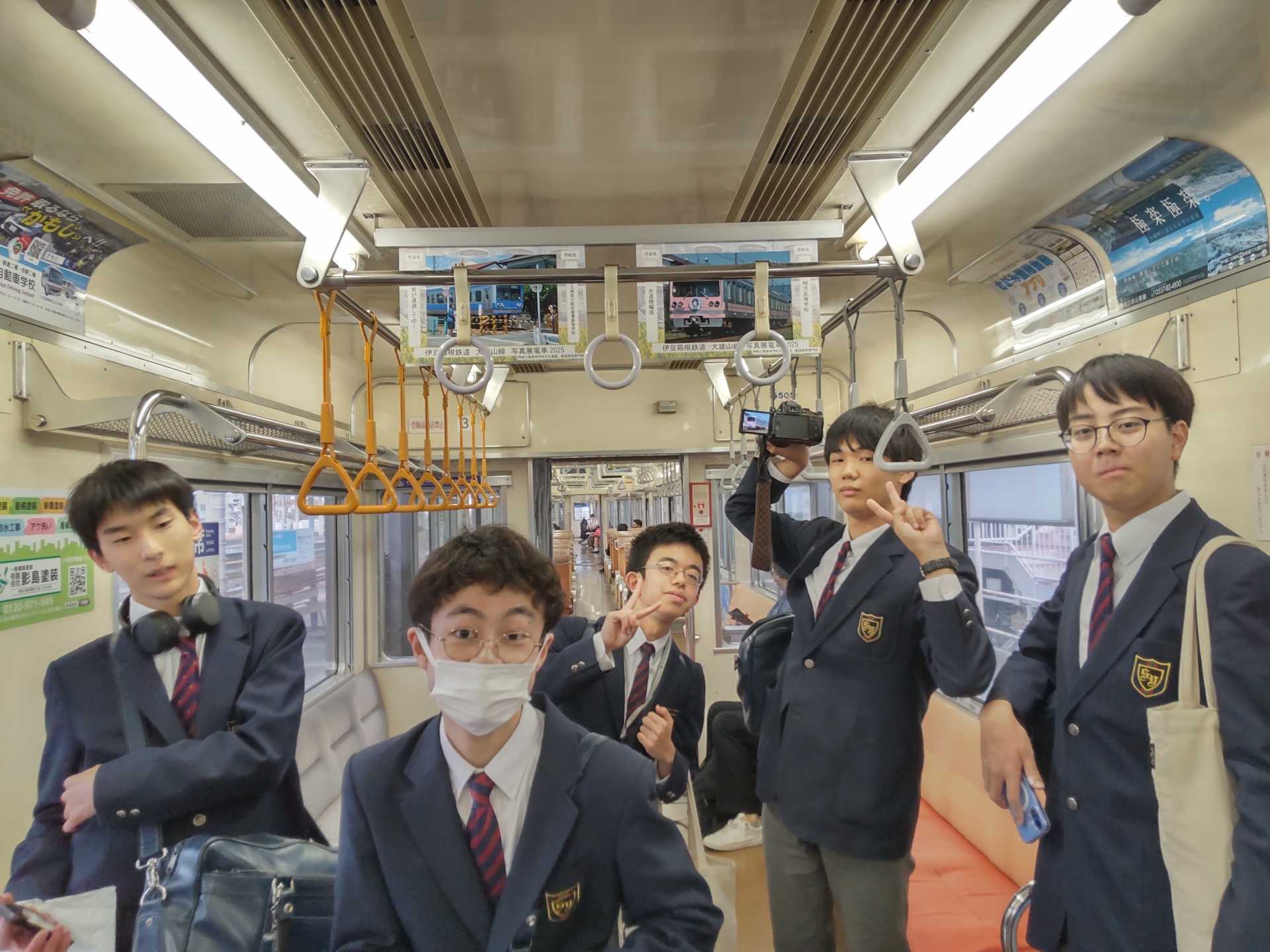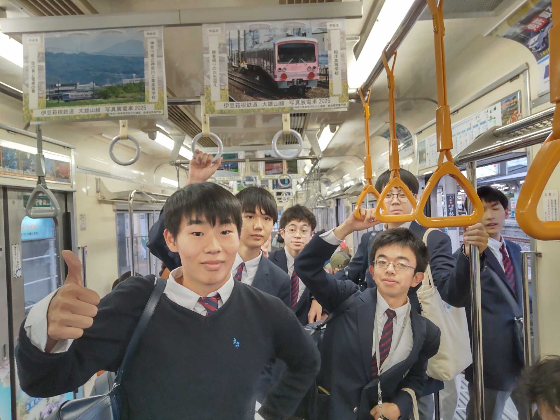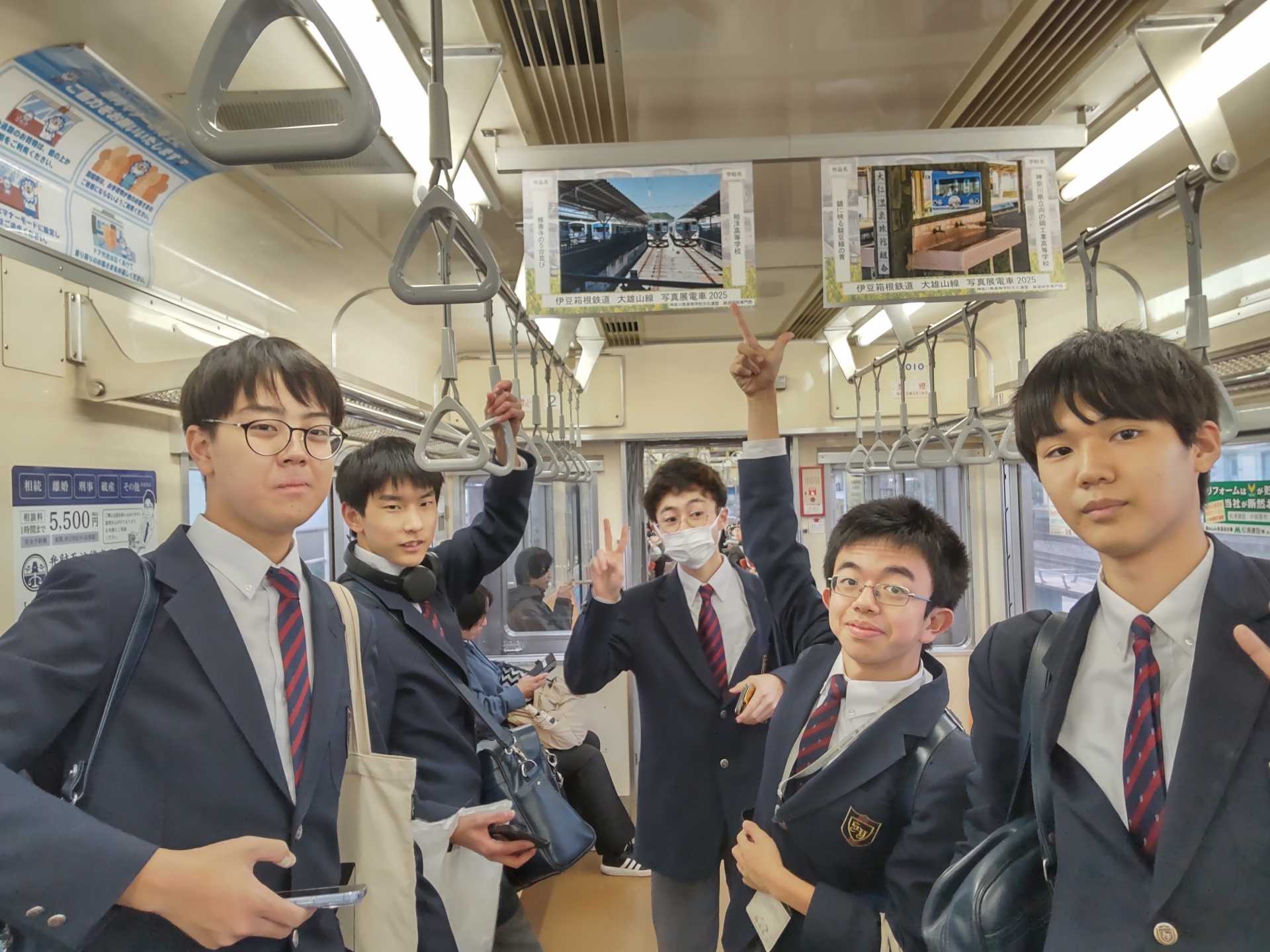 大雄山線の5505編成という車両に、本校生徒の写真が12月1日(月)まで展示されています。ぜひ、乗車の際に見ていただけると嬉しいです。