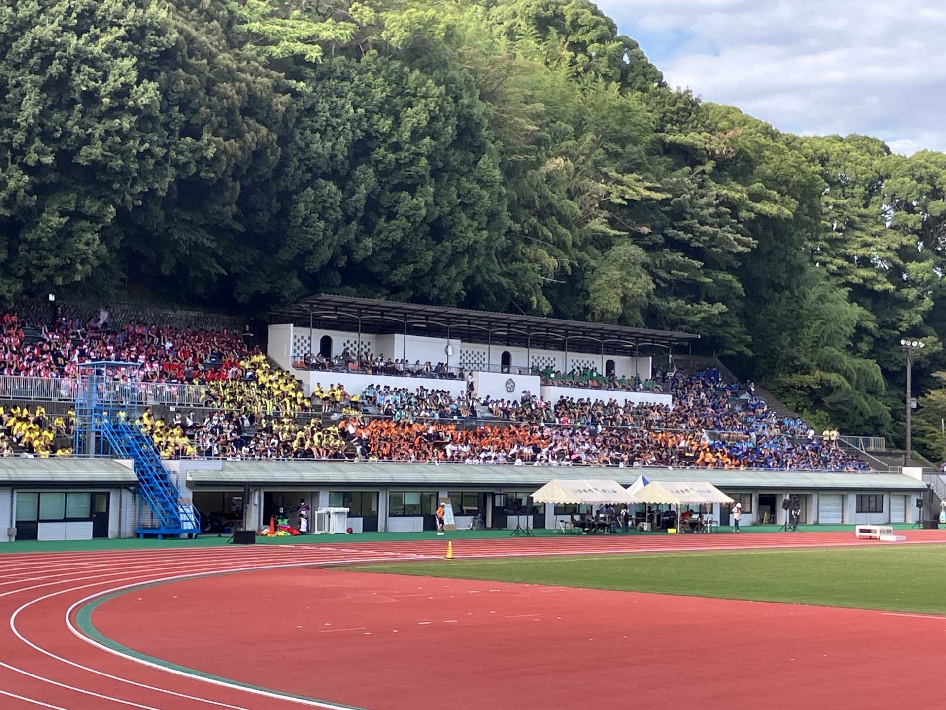 9月25日(木)、さわやかな秋晴れのもと、小田原の城山陸上競技場にて本校体育祭が行われました。当日は、平日にもかかわらず多くの保護者の方々がお越しくださり、カラフルなクラスTシャツを着た生徒たちとともに会場を盛り上げてくれました。