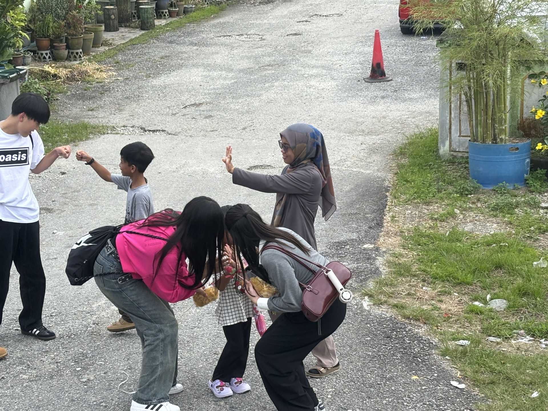 午後はプライ村を訪問し、各家庭で昼食をごちそうに。素手で食べるスタイルに最初は戸惑いながらも、「意外といける!」とすぐに慣れ、マレーシアの家庭料理をおいしく味わっていました。どの家庭でも温かく迎えていただき、伝統的な文化や人々の暮らしに触れる貴重な体験になったようです。