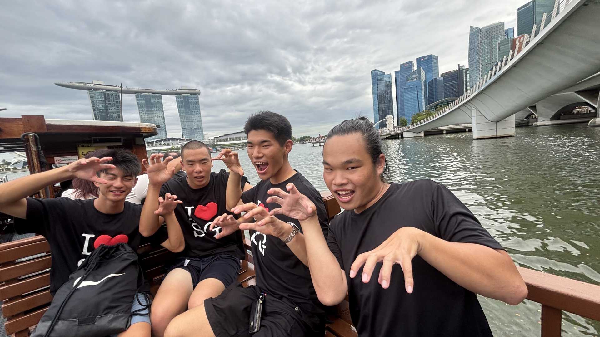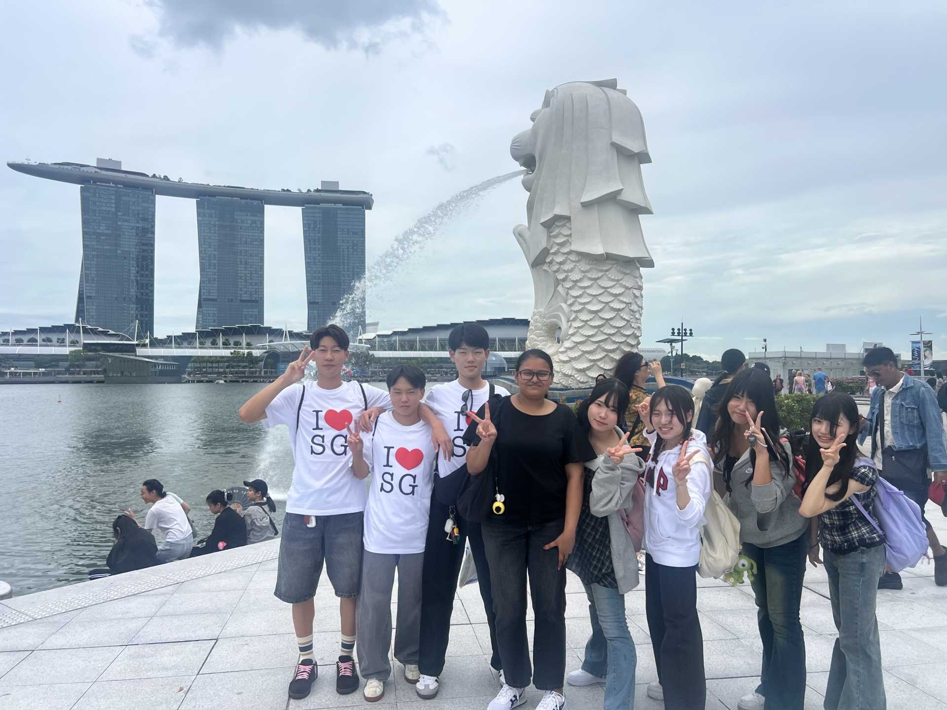 午後からは現地大学生とのB&Sプログラムを実施。MRTでの移動やボート体験など、シンガポールの街を肌で感じながらの交流となりました。水族館やショッピングモールを巡る中で自然と英語で会話を交わし、英会話への抵抗も次第に薄れていったようです。別れの時には笑顔でプレゼントを交換し、記念撮影を楽しむ姿も。短い時間ながら、心の距離がぐっと近づいた一日となりました。