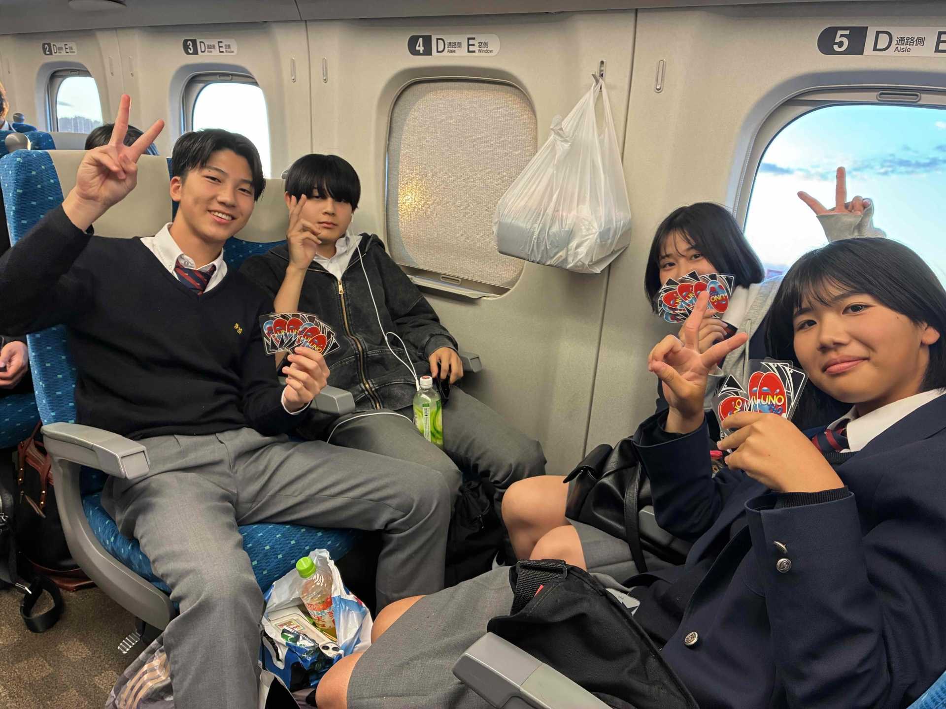 ぐっすり眠っている生徒が多かったですが、トランプをして最後まで地域研修旅行を満喫している生徒もいました。