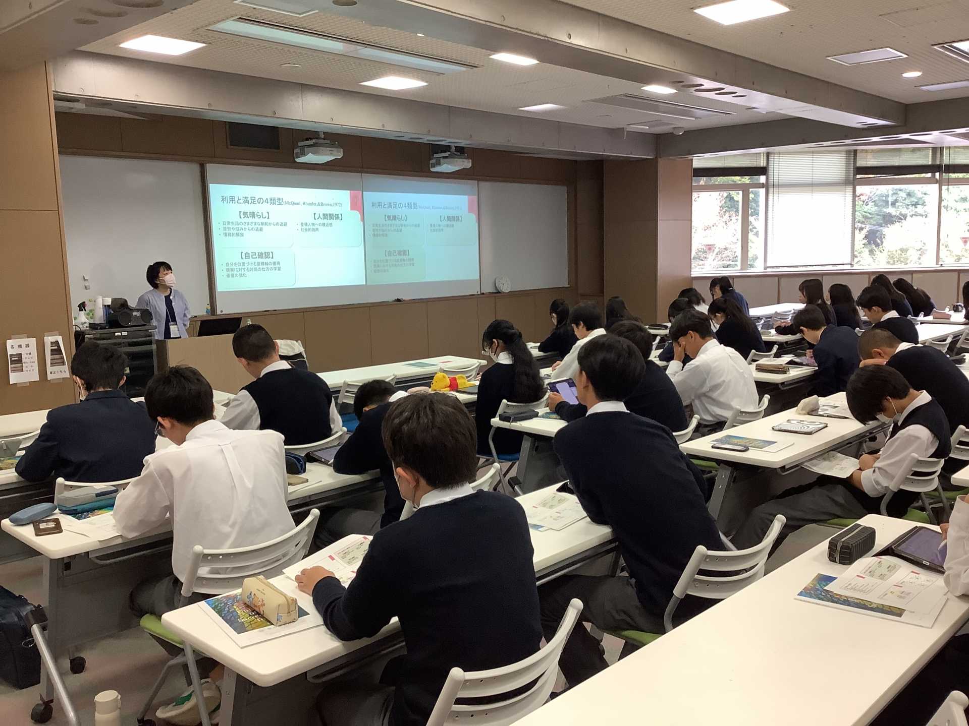 10月23日(木)、高校1年生全員を対象とした「大学の学問分野を知る」「大学での学問とはどんなものか」をテーマとした出張講義が行われました。当日は、慶應義塾大学、早稲田大学、北里大学をはじめ19大学から21名の大学の先生方にお越しいただき、心理学、法学、薬学など各分野についての概要や先生方の専門としている学問の講義をしていただきました。
