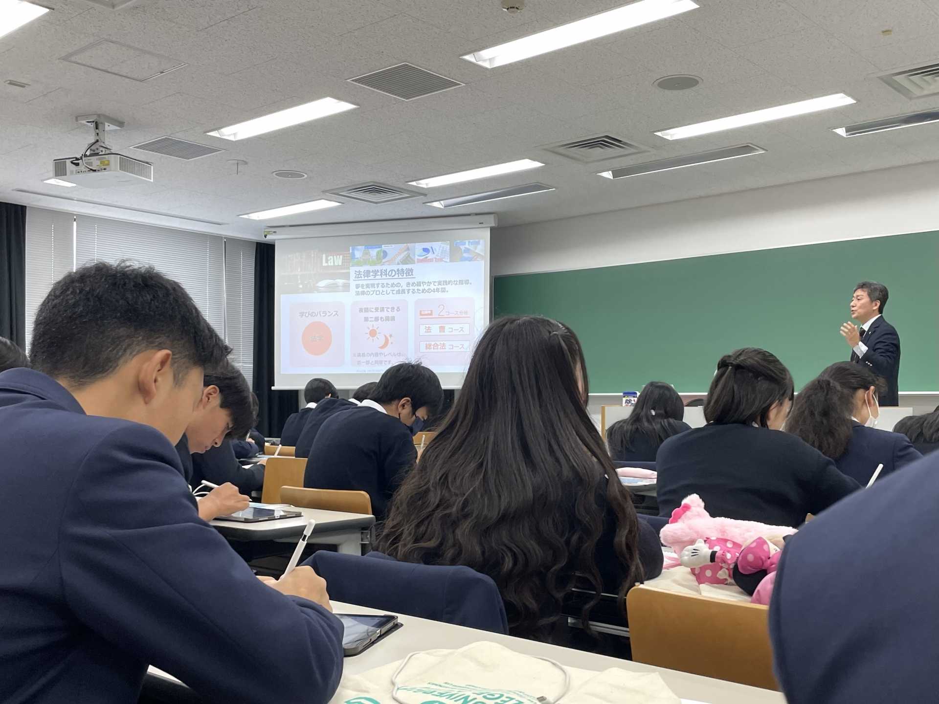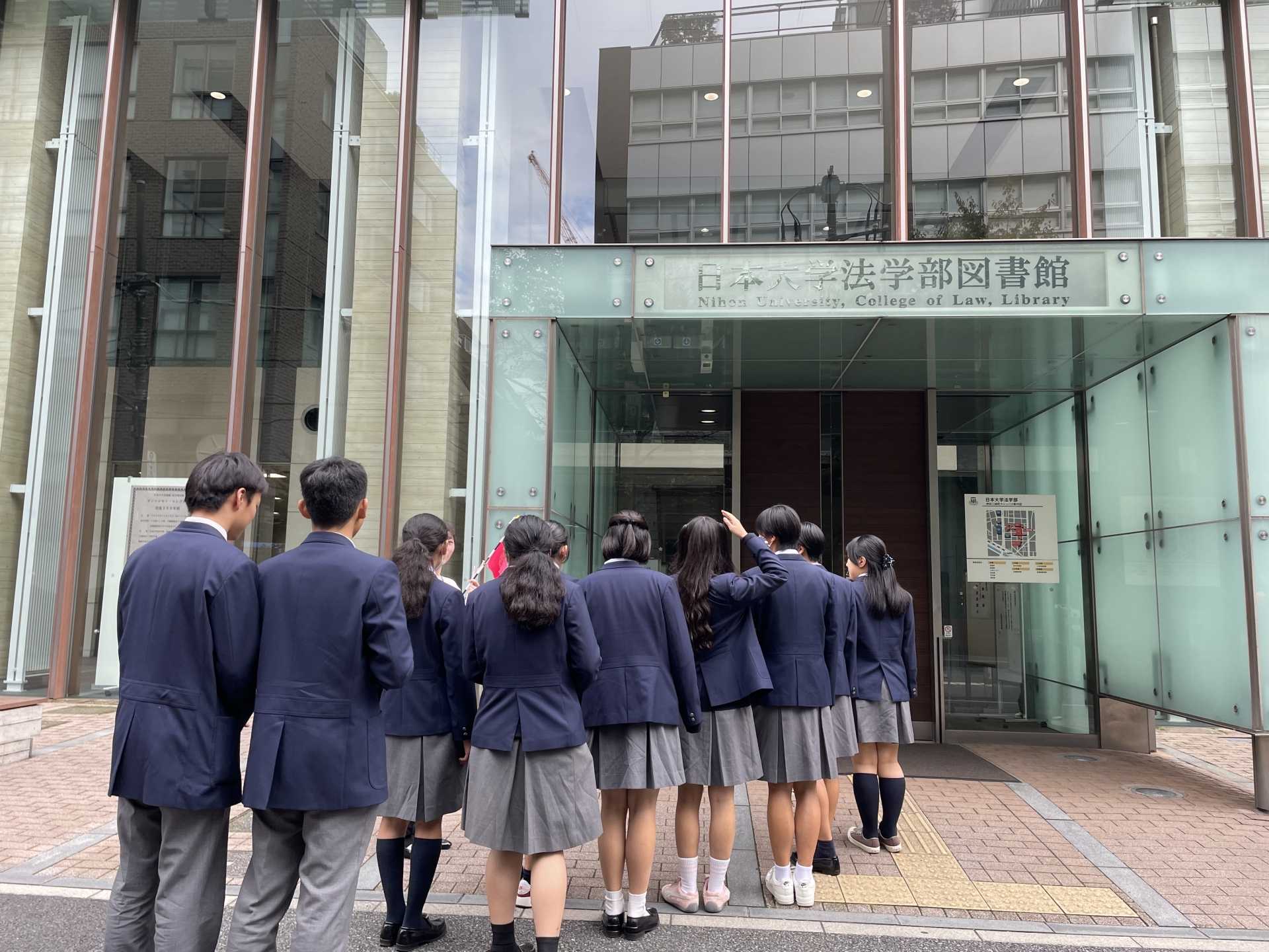 10月24日(金)に、水道橋に位置する日本大学法学部へ大学見学にうかがいました。 高校生になってから初めての大学見学ということで、「大学を知る」をテーマに、「教育機関としての大学」・「研究機関としての大学」、両側面について理解を深めることができました。 大学の素晴らしい設備の見学に、多くの生徒が感動を覚えていた様子でした。これから迎える文理選択の貴重な材料としてほしと思います。