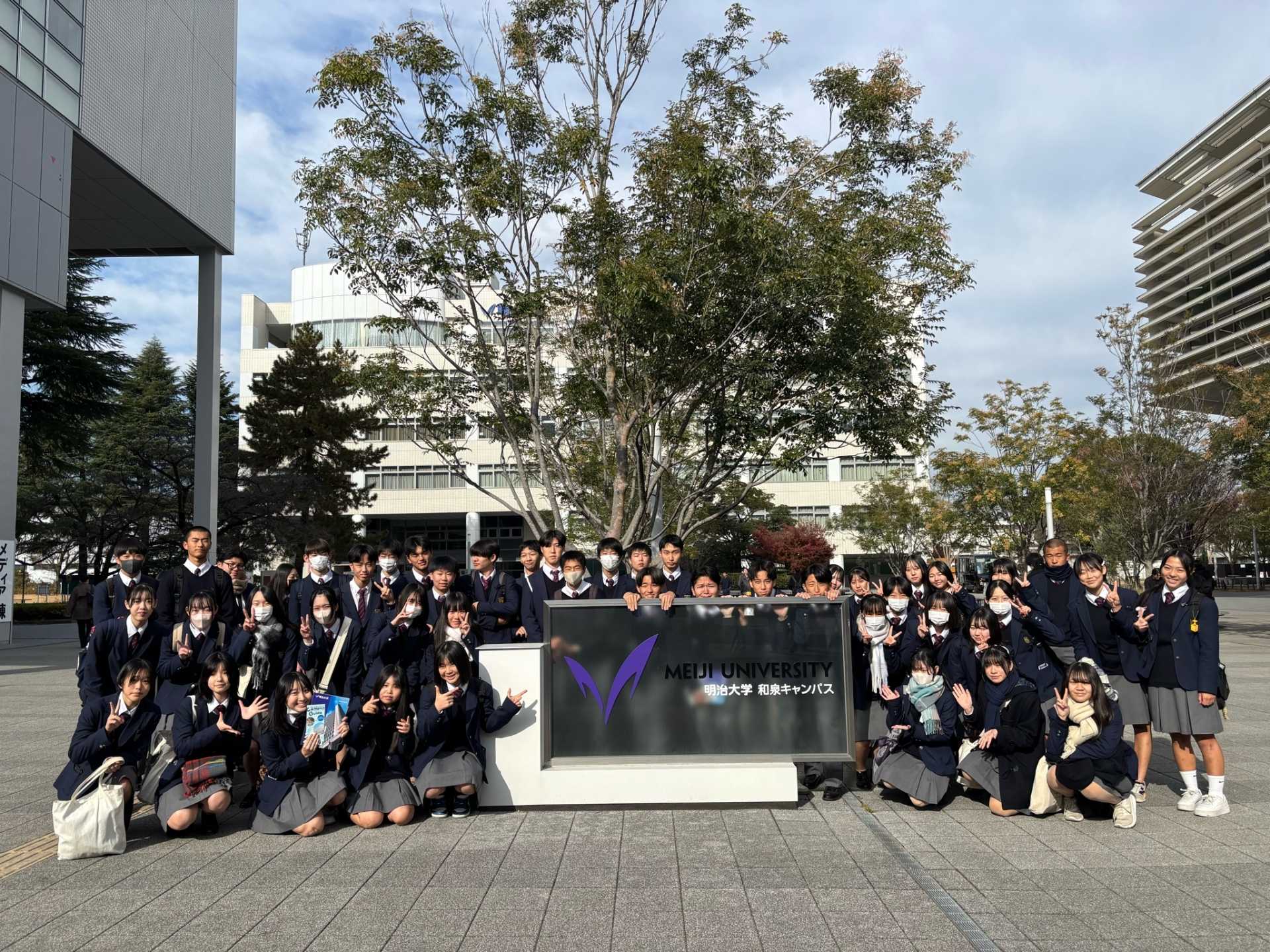 12月11日(木)、北里大学、明治大学和泉キャンパス・駿河台キャンパス、東洋大学の4つに分かれて大学見学に行ってきました。 生徒たちには事前に用意してきた質問を大学の方にするなど意欲的な姿勢が見られ、大学進学に対する関心の高さがうかがえました。学食体験をさせていただけた大学もあり、大学生活を身近に感じることができたのではないかと思います。 文理コース1年生は19日(金)にも大学見学を予定しています。進路決定に向けて有意義な時間になることを期待しています。