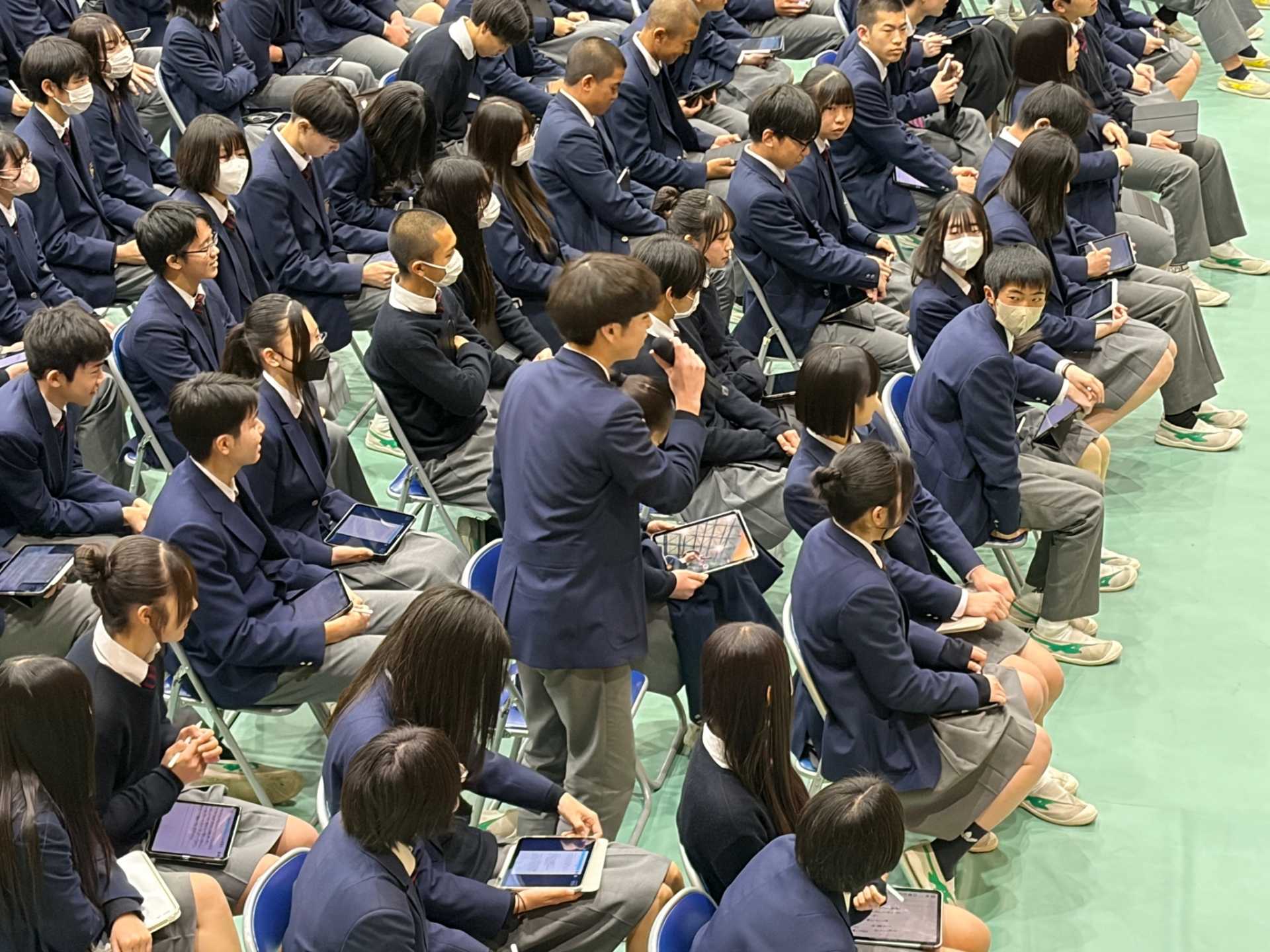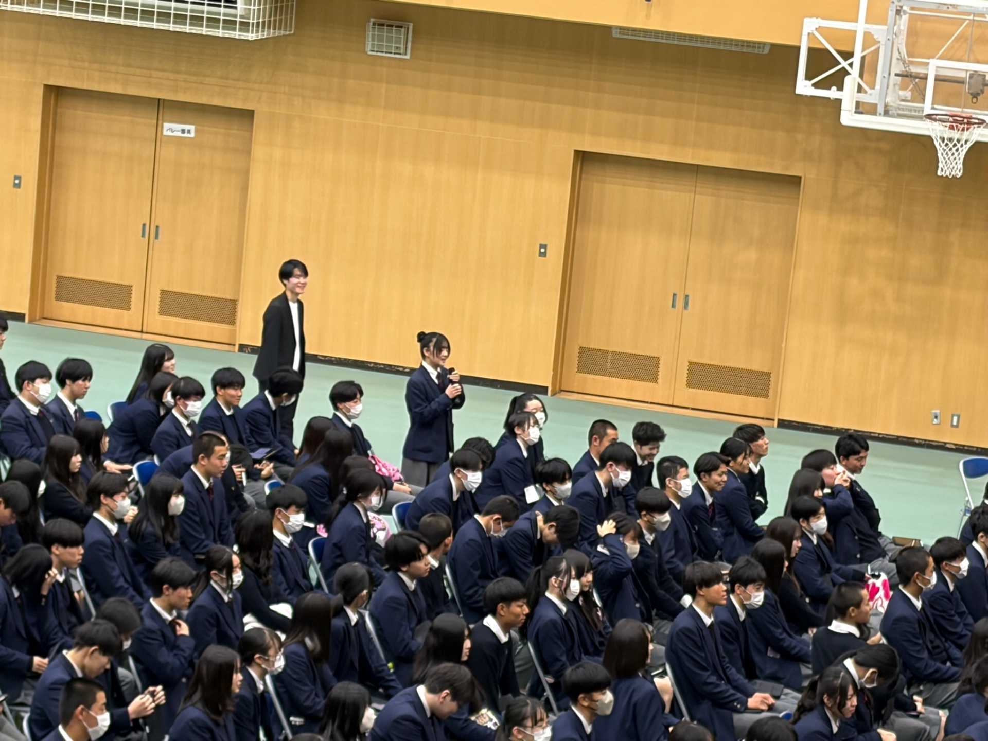 当日は、「英語を学ぶ楽しさ」をテーマに、ご自身の生い立ちや外国語への向き合い方、英語を学ぶ意義などについて、ユーモアを交えながら分かりやすくご講演いただきました。講演中、生徒たちは熱心にメモを取りながら耳を傾け、質疑応答では積極的に手を挙げて質問する姿が見られました。