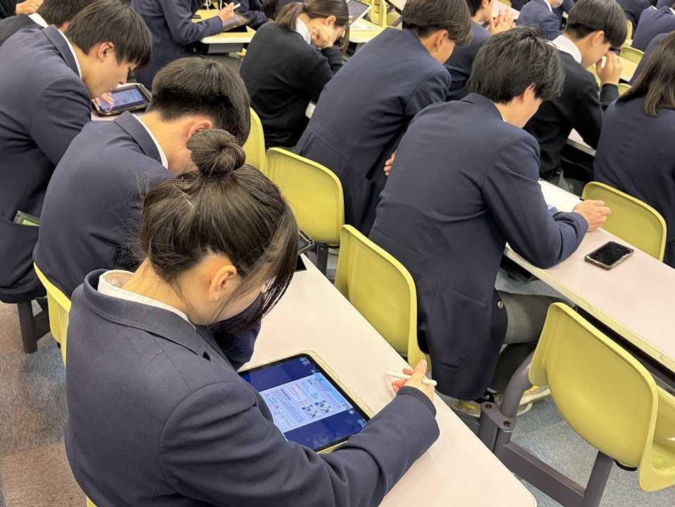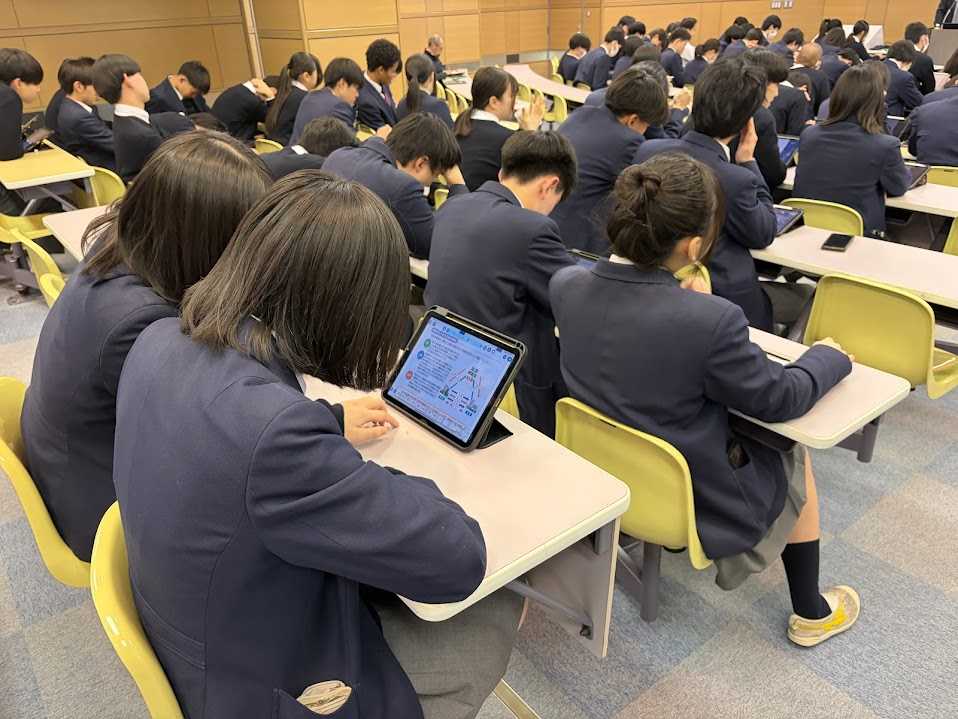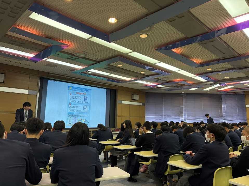 生徒の中にはすでに株式投資を始めている者もおり、講師の話に興味深く耳を傾けていました。「お金について学びたいと思っていたので楽しかった」「将来のために役立つ話だった」といった感想も聞かれ、有意義な学びの時間となりました。